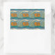 Blue Ocean Waves Nautilus Seashell Pattern Nouveau Rectangular Sticker