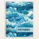 Pretty blue ocean waves roll and crash across the front and back of this planner cover (front and back). Customize it with the year.