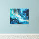 Blue Ocean with Gold Swirl Acrylic Paint Pour Canvas Print