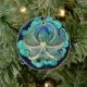 Ceramic Holiday Style Ornament adorned with a Blue Octopus on Waves of Greens and Blues