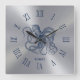Blue Octopus Roman Numerals On Dark Silver Square Wall Clock