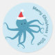 Blue Octopus Santa Merry Christmas Classic Round Sticker
