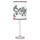 The lamp looks exactly like the picture, bright and colorful. The lamp shade is plastic not what I expected, however I love it! The printing is clear and the name can easily be read.