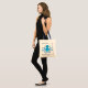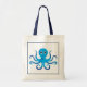 Tote bag shown in natural with navy blue straps with a cute blue octopus image.