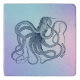 Pink and blue tranquil ombre with dark blue octopus, nautical illustration. Optional monogram.
