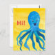A cheerful postcard featuring a blue octopus illustrated with watercolor in several shades of blue on a bright yellow background. You can customize the text to fit your needs.