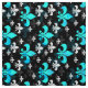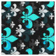Blue and White Fleur De Lis French Retro lily Surface Pattern on black translucent background Fabric