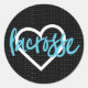 Blue on Black Lacrosse Sticks & Hearts Pattern Classic Round Sticker