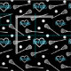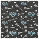 Blue on Black Lacrosse Sticks & Hearts Pattern Fabric