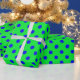Blue On Green Polka Dots Pattern Design Wrapping Paper