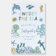 Under the sea theme boy's 1st birthday party welcome sign featuring illustration of blue ocean creatures. The text says "ONEDER the sea."