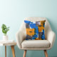 Blue, orange, and gray abstract art throw pillow