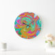 Blue, Orange and Hot Pink Groovy Abstract Retro Large Clock