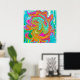 Blue, Orange and Hot Pink Groovy Abstract Retro Poster