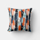 Blue Orange Brushstrokes Abstract Pattern Throw Pillow