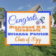 Congratulate your graduate with a festive blue and orange congratulations sign! Bright blue and orange colors and bold lettering will be easy to see and is a versatile design for high school or college graduates in your community. Customize the colors to your local school colors and easily transfer to cards and gifts.