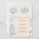 Blue Orange Drawn Whimsical All In One Wedding Invitation