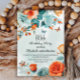 Blue Orange Floral Butterflies 80th Birthday Invitation