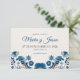 This Blue Orange Floral Elegant Fiesta Spanish Wedding Save the Date design features an intricate floral pattern that wraps around the border, showcasing delicate blue and orange flowers interwoven with curling vines and leaves. The color palette, consisting mainly of soft blues with touches of warm orange, creates a harmonious contrast, evoking a hand-painted, artisanal quality. The symmetry of the design along with the detailed floral motifs adds a traditional, handcrafted charm, reminiscent of Mexican folk art.