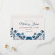 The matter paper is our sample of choice -- it's a reasonably priced, good quality, nice feeling paper stock. We were a little concerned the muted rustic blues might not reproduce all that well (usually by light colored samples), but they're just gorgeous! The white lettering is perfect in combination with the blue background, and the typography is all easy to read.