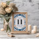 Blue Orange Floral Elegant Fiesta Spanish Wedding Table Number