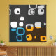 Blue, Orange, Grey Retro Abstract Art Wrapped Canvas