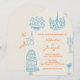 Blue Orange Hand Drawn Whimsical Arched Wedding Invitation