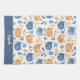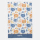 Adorable blue and orange watercolor cat faces make a cute pattern on this kitchen towel. Along with the cat faces are matching leaf images. The bottom of the towel has a matching blue border with your name or custom text in white.