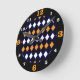 Blue & Orange Harlequin Pattern Round Clock