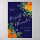 Blue & Orange Rose Floral Modern Wedding Poster