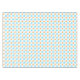 Dotted blue and orange tablecloth.