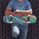 Blue Orange Teal Abstract Geometric Feathers Skateboard