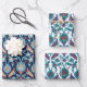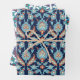 Blue Orange Teal Red White Oriental Floral Pattern Wrapping Paper Sheets