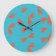Blue, orange, vibrant, trendy geometric pattern large clock