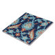 This is a colorful blue, cyan, white and orange terracotta vintage Turkish oriental floral pattern on a navy blue background.
