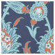 Colorful blue, cyan, white and orange terracotta vintage Turkish oriental floral pattern on a navy blue background.