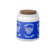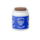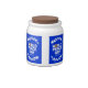 Celebrate the International Day of Peace (aka World Peace Day) on September 21 with this candy jar, which shows a repeating pattern of a bright orange peace sign standing in for the letter O in world, encircled by laurel leaves on a calming blue background.