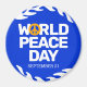 Celebrate the International Day of Peace (aka World Peace Day) on September 21 with this magnet, which shows a bright orange peace sign standing in for the letter O in world, encircled by laurel leaves on a calming blue background.