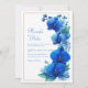 Set a tone of modern elegance for your special day with this stunning botanical design. The centerpiece is a striking gold geometric frame formed by interlocking hexagonal lines, accented with shimmering gold glitter sparkles. Lush branches of vibrant royal blue orchid blooms and fresh green leaves are artfully arranged around the metallic structure, creating a beautiful contrast against the clean, crisp white background. This design perfectly blends contemporary lines with timeless floral beauty. This design is an excellent choice for a modern city wedding, a chic gallery reception, or an elegant evening celebration. It is perfectly suited for couples planning a sophisticated "Royal Blue and Gold" color palette. The clean aesthetic and bold botanical elements make it a versatile match for upscale venues like a contemporary hotel ballroom, a modern art space, or a formal garden setting.