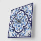 Blue Ornate Floral Mediterranean Sicilian Tile Square Wall Clock