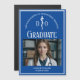 This royal blue custom osteopathic medical school graduation announcement magnetic card for a DO or an osteopath doctor features an osteopathic medical caduceus symbol and your college photo for the class of 2025. Customize with your graduating year in white for a great personalized university graduate photograph magnet.