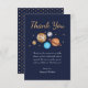 Thank your friends and family for coming to your baby shower with these out of this world, space themed baby shower thank you cards. The thank you cards can be personalized from the 'thank you' to the thank you message for your guests. Part of our space themed baby shower collection.