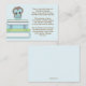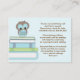 A cute little blue owl perches atop a stack of blue and green books on a soft baby blue background in this fun book request wishing well card. A charming poem requests that guests bring a book for the baby-to-be to start the new mom off with a library of beloved children's books. Just insert this sweet card inside the baby shower envelope, and your guests will know what's needed to start baby on the path towards reading.