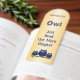 This owl design bookmark is a marker, in Soft Touch Premium Silk for a velvety feel or a sleek Glossy Laminate for a vibrant sheen, that is used to keep track of where a reader has stopped in a book. Bookmarks are placed between the pages of a book to easily locate the last reading position without damaging the book. You can customise this bookmark with any text and background colour of your choice. Should you require any help with customising then contact us through the message link on this page. This owl design bookmark makes an ideal gift for readers, book lovers, authors, publishers or a gift for a friend or loved one
