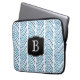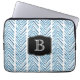 Blue Painted Chevrons Pattern with Monogram Laptop Sleeve