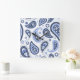 Blue Paisley Pattern Square Wall Clock