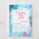 Blue Palm Leaves Pink Flamingo Summer Birthday Invitation