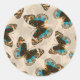 Blue Pansy Butterfly pattern on off white Classic Round Sticker