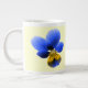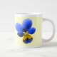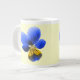 This awesome mug features a photograph of a wild Pansy flower. The photo has been artificially coloured resulting in a pansy with light and dark shades of blue and a pale yellow centre. The background is pale yellow to show off the beauty of this flower to the maximum.