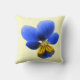 This awesome pillow features a photograph of a wild Pansy flower. The photo has been artificially coloured resulting in a pansy with light and dark shades of blue and a pale yellow centre. The background is pale yellow to show off the beauty of this flower to the maximum.